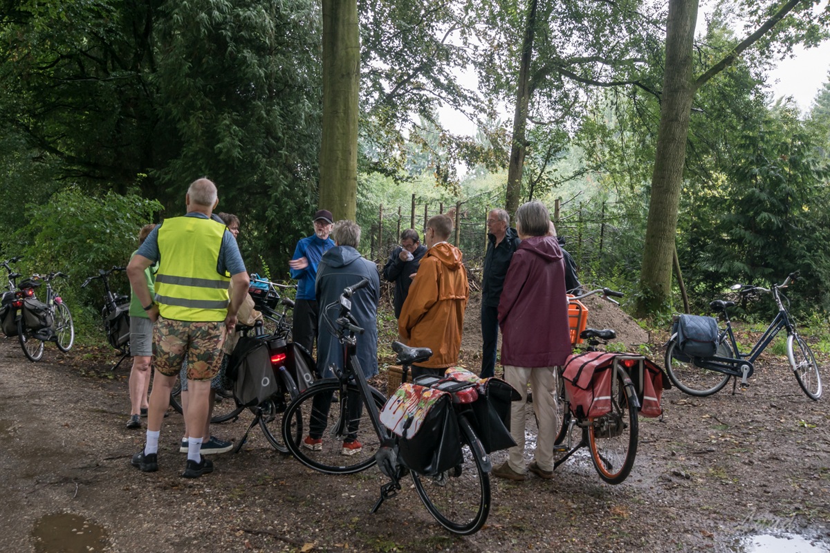 Dwars door een plensbui heen kwamen de deelnemers daarna via het dorp Beemte uit bij het Apeldoorns Kanaal. De fietsers zijn dan aangekomen in de beoogde groene wig Wolvenbos.