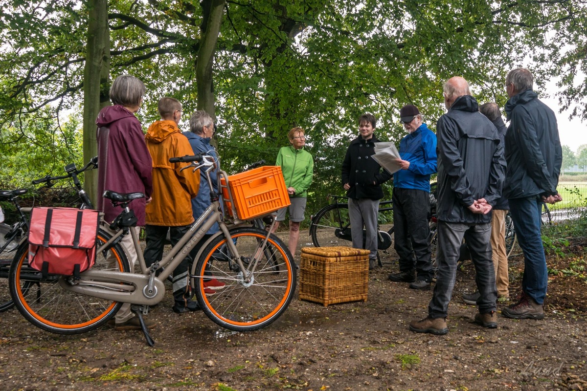 Op zaterdag 20 september en woensdag 24 september 2025 fietste SDG Groep Apeldoorn met geïnteresseerden onder leiding van gids Peter van de Laak langs De Groene Mal in Apeldoorn. De Groene Mal is een groene corridor in Apeldoorn die bestaat uit parken, groene lanen en natuurgebieden die met elkaar verweven zijn. Het speelt een cruciale rol in het behoud van de ecologische diversiteit van de stad. Vogels, insecten en zoogdieren gebruiken de Groene Mal als een veilige verbinding tussen de diverse groene gebieden binnen en buiten de stad. De fietstochten leidden de deelnemers langs bijzondere plekken en diverse initiatieven voor het behoud en de ontwikkeling van een groenblauwe hoofdstructuur in en rondom Apeldoorn. Van Woudhuizen naar Wolvenbos De deelnemers gingen daarna in de richting van Landgoed Woudhuizen. Dit landgoed bestaat uit een afwisseling van gras- en akkerland, bos- en natuurgebied. Op verschillende plaatsen zijn poelen aangelegd voor kikkers en andere amfibieën. Een grote waterplas biedt plek voor diverse vogels. Aan de oostzijde van Landgoed Woudhuizen stroomt de Grote Wetering. Van oorsprong was het een kronkelende beek, maar deze is rond 1850 rechter getrokken en in latere jaren verbreed. Voor de natuur was deze ingreep minder positief. Inmiddels zijn er weer flauwe oevers gemaakt en natuurlijke zones aangelegd. De Grote Wetering leidde de fietsers naar de groene wig Park Zuidbroek. Dit is een initiatief van bewoners geweest en bestaat uit drie zones. Een zone voor recreatieve activiteiten, die overgaat in een gras- en weidezone bestemd voor weidevogels, vlinders en insecten. In de derde zone heeft de natuur vrij spel. Langs de Nieuwe Wetering kwamen de deelnemers uit bij Weteringse Broek. Dit natuurgebied bestaat uit vochtige kruidenrijke graslanden: een belangrijke voedselbron voor vlinders en andere insecten. Op de grenzen van het gebied zijn knotwilgen en een elzensingel aangelegd. In de struiken vinden veel zoogdieren en vogels voedsel en nestgelegenheid. Dwars door een plensbui heen kwamen de deelnemers daarna via het dorp Beemte uit bij het Apeldoorns Kanaal. Hier ligt de beoogde groene wig Wolvenbos. Het gebied bestaat uit grasweiden, bosjes en verspreide (agrarische) bebouwing. Zij werden daar getrakteerd op een heerlijke versnapering en wat te drinken. De fietstocht eindigde met een mooie bijdrage van René van Commenée van de Partij voor de Dieren over het belang van duisternis voor de natuur. Wist u bijvoorbeeld dat nachtvlinders belangrijk zijn voor de bestuiving? Ongeveer de helft van al het dierlijk leven leeft in de schemer en de nacht. Beekbergse Poort Bij Klarenbeek bezochten de fietsers het natuurontwikkelingsproject Lampenbroek. Ellen ter Stege van Natuurmonumenten vertelde hen hier meer over. Het natuurgebied (150 hectare) wordt voor een groot deel ingericht als blauwgrasland voor vlinders en andere insecten. Ook komt er bos. Het Beekbergerwoud vormde de volgende stop. In dit natuurgebied stond het laatste oerbos van Nederland. Het is in de 19de eeuw gekapt en later opnieuw als broekbos ingericht. Een broekbos kenmerkt zich door een permanent hoge grondwaterstand. Natuurmonumenten wil het landbouwgebied aan de andere zijde van de A1 ook ontwikkelen als bosgebied. De Beekbergse Beek, Lampenbroek en het Beekbergerwoud zijn onderdeel van de Beekbergse Poort. Dit is een brede ecologische zone tussen Veluwe en IJssel. Voor de Beekbergse Poort is er een programma om allerlei ecologische verbindingen te herstellen en belemmeringen en beperkingen weg te nemen. De gemeente heeft echter andere plannen met dit gebied. Dat bleek toen Jacky Kroon van de Partij voor de Dieren de fietsers ter hoogte van het dierenasiel aan de Kuipersdijk bijpraatte. Aan de overzijde van de A50 ín de Beekbergse Poort gaat de gemeente 500 woningen bouwen (Host City) vóór 2030. Daarnaast wil het in datzelfde gebied verdere, grootschalige woningbouw van enkele duizenden woningen realiseren. De toer eindigde in de Metaalbuurt met een demonstratie van Henk Holtslag bij een proeflocatie voor het afkoppelen van regenwater bij een woning. Regenwater wordt daarbij opgevangen en tijdelijk opgeslagen in de bodem. In de zomer kan het regenwater vervolgens worden benut voor het bewateren van de tuin wanneer het droog is. |