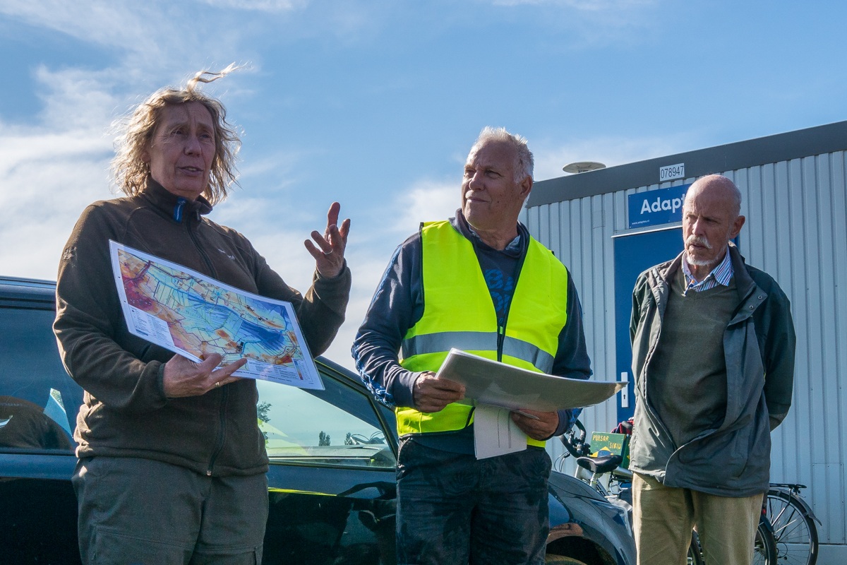 Op zaterdag 20 september en woensdag 24 september 2025 fietste SDG Groep Apeldoorn met geïnteresseerden onder leiding van gids Peter van de Laak langs De Groene Mal in Apeldoorn. De Groene Mal is een groene corridor in Apeldoorn die bestaat uit parken, groene lanen en natuurgebieden die met elkaar verweven zijn. Het speelt een cruciale rol in het behoud van de ecologische diversiteit van de stad. Vogels, insecten en zoogdieren gebruiken de Groene Mal als een veilige verbinding tussen de diverse groene gebieden binnen en buiten de stad. De fietstochten leidden de deelnemers langs bijzondere plekken en diverse initiatieven voor het behoud en de ontwikkeling van een groenblauwe hoofdstructuur in en rondom Apeldoorn. Van Woudhuizen naar Wolvenbos Op 20 september startte de tocht vanaf de groene wig Zonnehoeve. Een deel van deze wijk is ingericht als bloemenweide: een groot contrast met de Hornbach die aan de overzijde ligt. Een stenen blokkade zonder natuurvriendelijke inrichting. De deelnemers gingen daarna in de richting van Landgoed Woudhuizen. Dit landgoed bestaat uit een afwisseling van gras- en akkerland, bos- en natuurgebied. Op verschillende plaatsen zijn poelen aangelegd voor kikkers en andere amfibieën. Een grote waterplas biedt plek voor diverse vogels. Aan de oostzijde van Landgoed Woudhuizen stroomt de Grote Wetering. Van oorsprong was het een kronkelende beek, maar deze is rond 1850 rechter getrokken en in latere jaren verbreed. Voor de natuur was deze ingreep minder positief. Inmiddels zijn er weer flauwe oevers gemaakt en natuurlijke zones aangelegd. De Grote Wetering leidde de fietsers naar de groene wig Park Zuidbroek. Dit is een initiatief van bewoners geweest en bestaat uit drie zones. Een zone voor recreatieve activiteiten, die overgaat in een gras- en weidezone bestemd voor weidevogels, vlinders en insecten. In de derde zone heeft de natuur vrij spel. Langs de Nieuwe Wetering kwamen de deelnemers uit bij Weteringse Broek. Dit natuurgebied bestaat uit vochtige kruidenrijke graslanden: een belangrijke voedselbron voor vlinders en andere insecten. Op de grenzen van het gebied zijn knotwilgen en een elzensingel aangelegd. In de struiken vinden veel zoogdieren en vogels voedsel en nestgelegenheid. Dwars door een plensbui heen kwamen de deelnemers daarna via het dorp Beemte uit bij het Apeldoorns Kanaal bij de beoogde groene wig Wolvenbos. Het gebied bestaat uit grasweiden, bosjes en verspreide (agrarische) bebouwing. Zij werden daar getrakteerd op een heerlijke versnapering en wat te drinken. De fietstocht eindigde met een mooie bijdrage van René van Commenée van de Partij voor de Dieren over het belang van duisternis voor de natuur. Wist u bijvoorbeeld dat nachtvlinders belangrijk zijn voor de bestuiving? Ongeveer de helft van al het dierlijk leven leeft in de schemer en de nacht. Beekbergse Poort Op 24 september leidde de route langs de zuidoostzijde van de Groene Mal. De tocht begon op de picknickplaats aan de Landdrostlaan en bracht de deelnemers eerst langs de kruising van de Beekbergse Beek en het Apeldoorns Kanaal. De beek die in het verleden bij Klarenbeek verschillende molens in beweging bracht, passeert het Apeldoorns kanaal via een ondergrondse leiding. Bij Klarenbeek bezochten de fietsers het natuurontwikkelingsproject Lampenbroek. Ellen ter Stege van Natuurmonumenten vertelde hen hier meer over. Het natuurgebied (150 hectare) wordt voor een groot deel ingericht als blauwgrasland voor vlinders en andere insecten. Ook komt er bos. Het Beekbergerwoud vormde de volgende stop. In dit natuurgebied stond het laatste oerbos van Nederland. Het is in de 19de eeuw gekapt en later opnieuw als broekbos ingericht. Een broekbos kenmerkt zich door een permanent hoge grondwaterstand. Natuurmonumenten wil het landbouwgebied aan de andere zijde van de A1 ook ontwikkelen als bosgebied. De Beekbergse Beek, Lampenbroek en het Beekbergerwoud zijn onderdeel van de Beekbergse Poort. Dit is een brede ecologische zone tussen Veluwe en IJssel. Voor de Beekbergse Poort is er een programma om allerlei ecologische verbindingen te herstellen en belemmeringen en beperkingen weg te nemen. De gemeente heeft echter andere plannen met dit gebied. Dat bleek toen Jacky Kroon van de Partij voor de Dieren de fietsers ter hoogte van het dierenasiel aan de Kuipersdijk bijpraatte. Aan de overzijde van de A50 ín de Beekbergse Poort wil de gemeente 500 woningen bouwen (Host City) vóór 2030. Daarnaast wil het in datzelfde gebied verdere, grootschalige woningbouw van enkele duizenden woningen realiseren. De toer eindigde in de Metaalbuurt met een demonstratie van Henk Holtslag bij een proeflocatie voor het afkoppelen van regenwater bij een woning. Regenwater wordt daarbij opgevangen en tijdelijk opgeslagen in de bodem. In de zomer kan het regenwater vervolgens worden benut voor het bewateren van de tuin wanneer het droog is. |